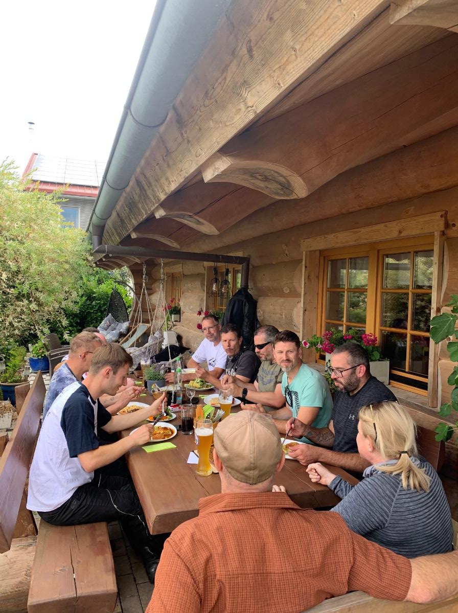Am 16.07.2023 starteten um 9.00 Uhr 12 Motorradfahrerinnen und Motorradfahrer ins Kraichgau. Ziel war Sachsenheim und dort die „Weinstube im Blockhaus“, wo wir uns zum Mittagessen trafen. Wir fuhren in 3 Gruppen und waren pünktlich gegen 12.30 Uhr am Blockhaus.